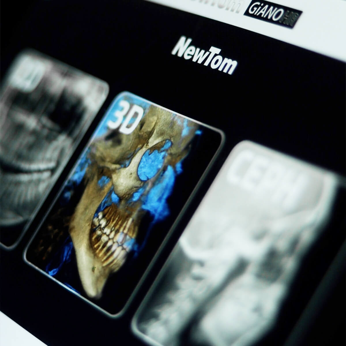 El tomógrafo nos brinda una visión tridimensional de hueso, estructuras anatómicas y tejidos, fundamental para procedimientos como implantología, cirugía guiada y rehabilitaciones complejas.